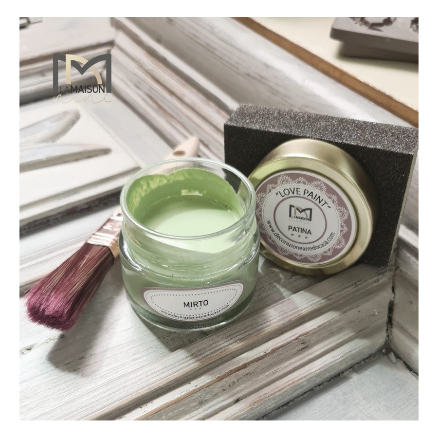 Es una pátina al agua a conjunto  con las pinturas Love Paint  . Son 25 preciosos  colores que le dan un toque  diferente a tus trabajos permitendote poder dar esos matices diferentes , profundidad . Los puedes aplicar sobre ka pintura , las molduras o los transy . Al ser al agua , puedes quitar el exceso fácilmente pero has de tener en cuenta que ha de ser protegido con un barniz o cera