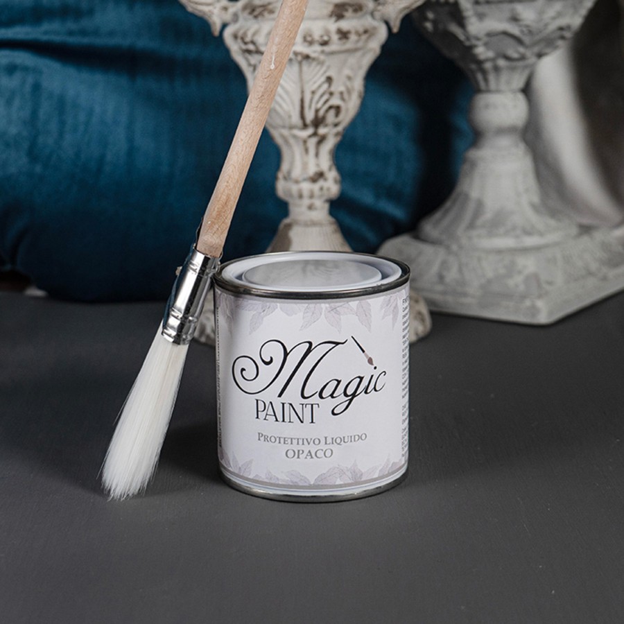Esta “capa superior” especial de Magic Paint es una pintura al agua transparente, inodora, supermate y totalmente antirreflectante con un agradable efecto táctil “Soft-Touch”. Es ideal para sobrepintar Chalk Magic Paint, realzando su porosidad y opacidad típicas, así como la profundidad de los colores fuertes.