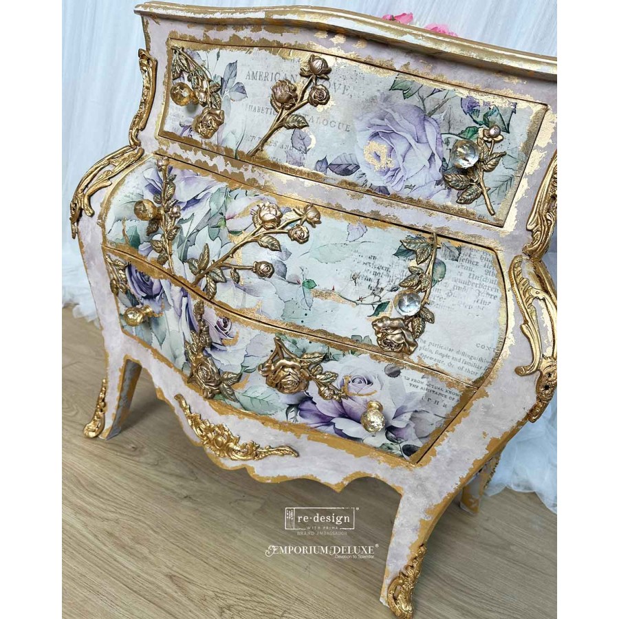 Un delicado arreglo de morados apagados y suaves flores lavanda, nuestro nuevo Set de Pañuelos de Decoupage de 48x76 cm + A3 – Velo Suave crea un look vintage de ensueño con un fondo envejecido y texturizado. Ideal para elegantes transformaciones de muebles, bandejas decorativas o arte con técnicas mixtas, este set incluye dos hojas de 49,5 x 76 cm y A3 (29,5 x 42,9 cm) para combinar con diferentes superficies, manteniendo la cohesión del diseño.