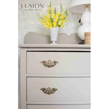Fusion Mineral Paint ™ le ha llevado a Homestead House Paints más de 10 años desarrollar, probar y refinar, y su arduo trabajo realmente ha valido la pena. Los resultados de Fusion's ™ son nada menos que espectaculares y brindan a los pintores de muebles la mejor pintura de su clase que cuenta una formulación respetuosa con el medio ambiente, cero COV, durabilidad superior, fácil aplicación en un solo paso y resistencia significativamente mejorada. Con un acabado mate excepcional, esta pintura 100% acrílica requiere un trabajo de preparación mínimo.