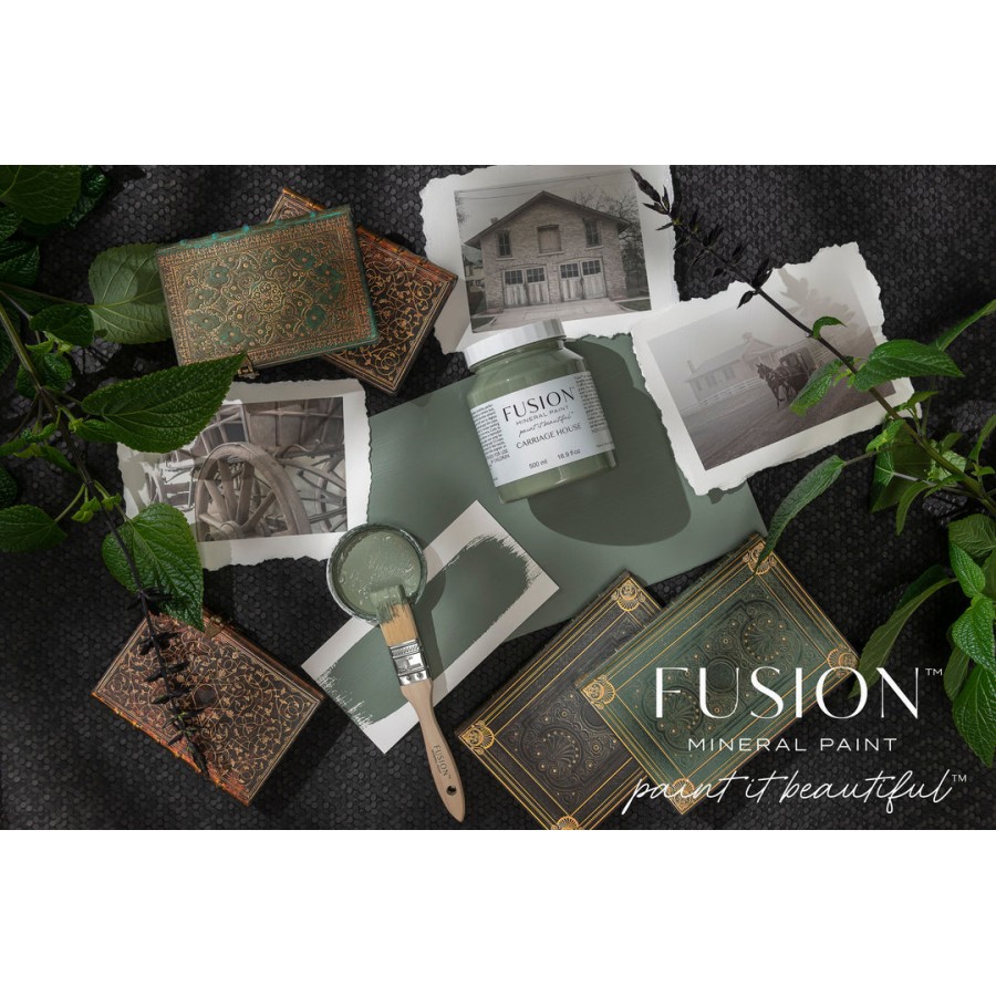 Fusion Mineral Paint Carriage House es un hermoso tono medio que combina un verde impactante y un gris sereno. Crea un aspecto encantador pero relajante.