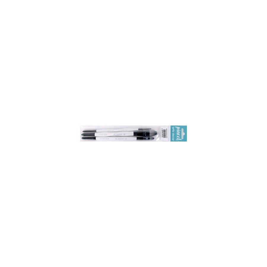 Set de tres pinceles de la Serie 4 (lengua de gato) Sorolla (nº0-10-24) Ancho de virola: 3,5-7-20mm. El pincel SOROLLA by ARTIS DECOR, fabricado a mano y gracias a sus filamentos sintéticos de la más alta calidad, le proporcionan un excelente acabado, los pelos son de dos colores, estando diseñado para la pintura acrílica con textura cremosa, aún así es adecuado para acuarela y óleo. Es un pincel muy equilibrado gracias a su forma de mango, un mango con gran belleza por sus dos colores principalmente lacado en negro y una franja blanca amplia. MANGO MADERA corto dos colores. VIROLA latón sin soldadura lacado en negro. PELOS hechos con filamentos sintéticos de altísima calidad.