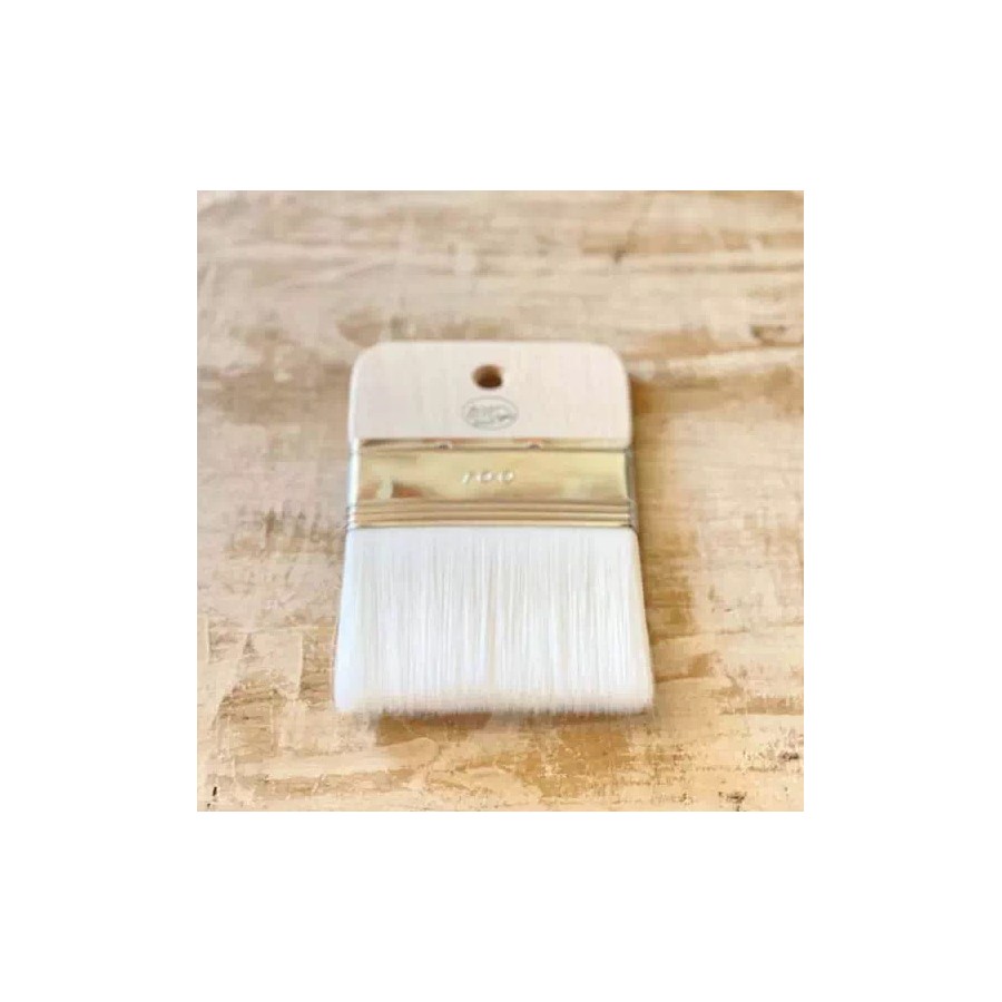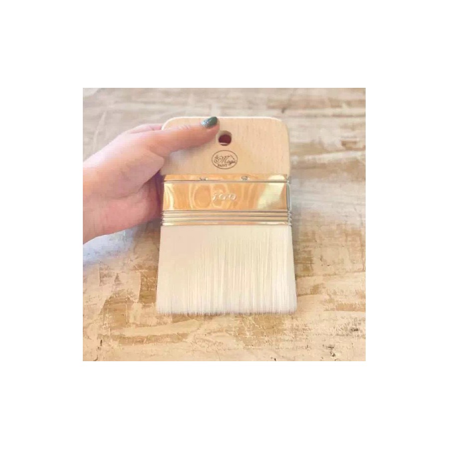 Brocha plana con cerdas sintéticas de la más alta calidad, largas y con una “sección puntiaguda”para una aplicación muy suave e impalpable.