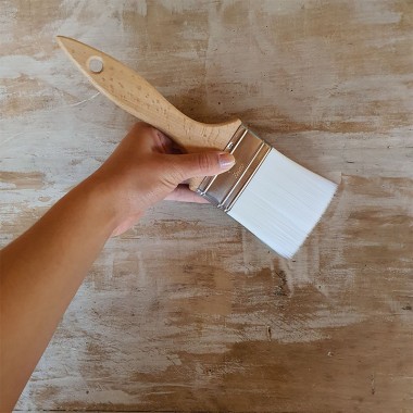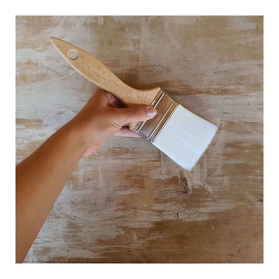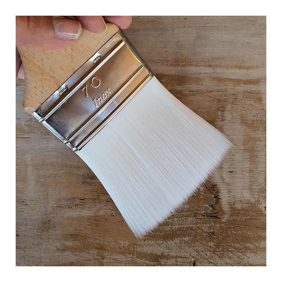 Brocha plana con cerdas de fibra sintética de alta calidad.
