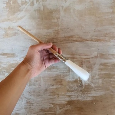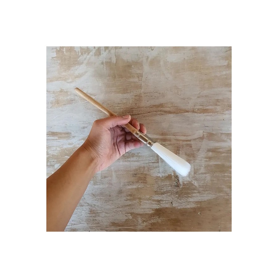 Sus cerdas son largas y flexibles y suaves, la anchura es de 7 cm con un práctico mango de madera.