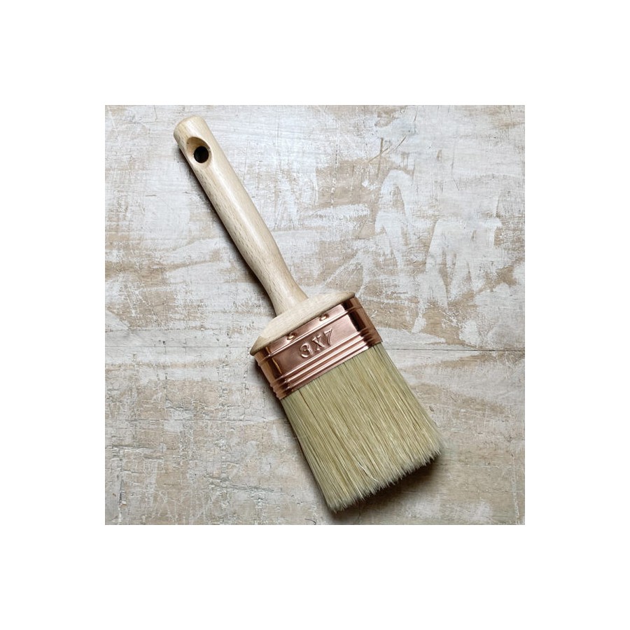Esta característica hace que este pincel sea muy adecuado para aplicar la pintura a la tiza, ya que incorpora mucha más pintura entre sus cerdas y permite una aplicación uniforme con marcas de brocha.
