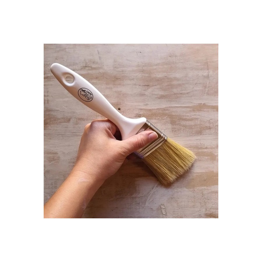 Sus cerdas inclinadas, flexibles y suaves y su práctico mango ergonómico permiten el acabado de esquinas y detalles.