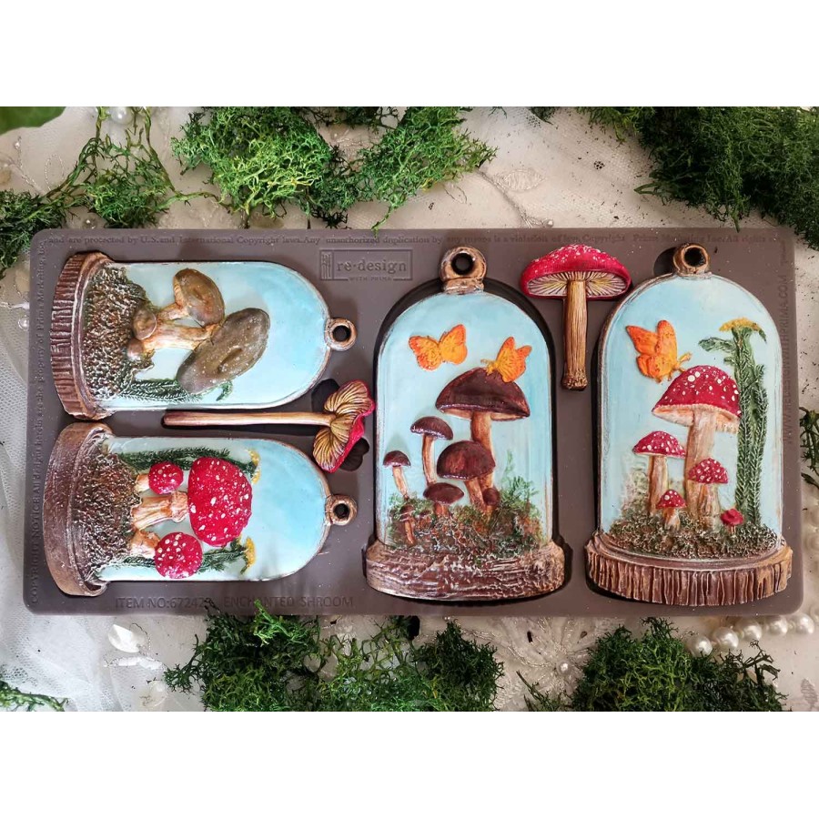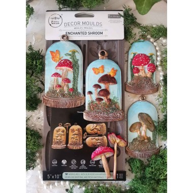 Dale un toque de magia de cuento de hadas a tus proyectos con el molde decorativo “Enchanted Shroom” Décor Mould®. Este extravagante molde muestra delicadas escenas de hongos encerradas en cúpulas de vidrio ornamentadas, llenas de detalles intrincados que te transportan a un bosque místico. Perfectos para quienes aman agregar un toque de encanto a su decoración navideña, estos diseños son tan mágicos como detallados.