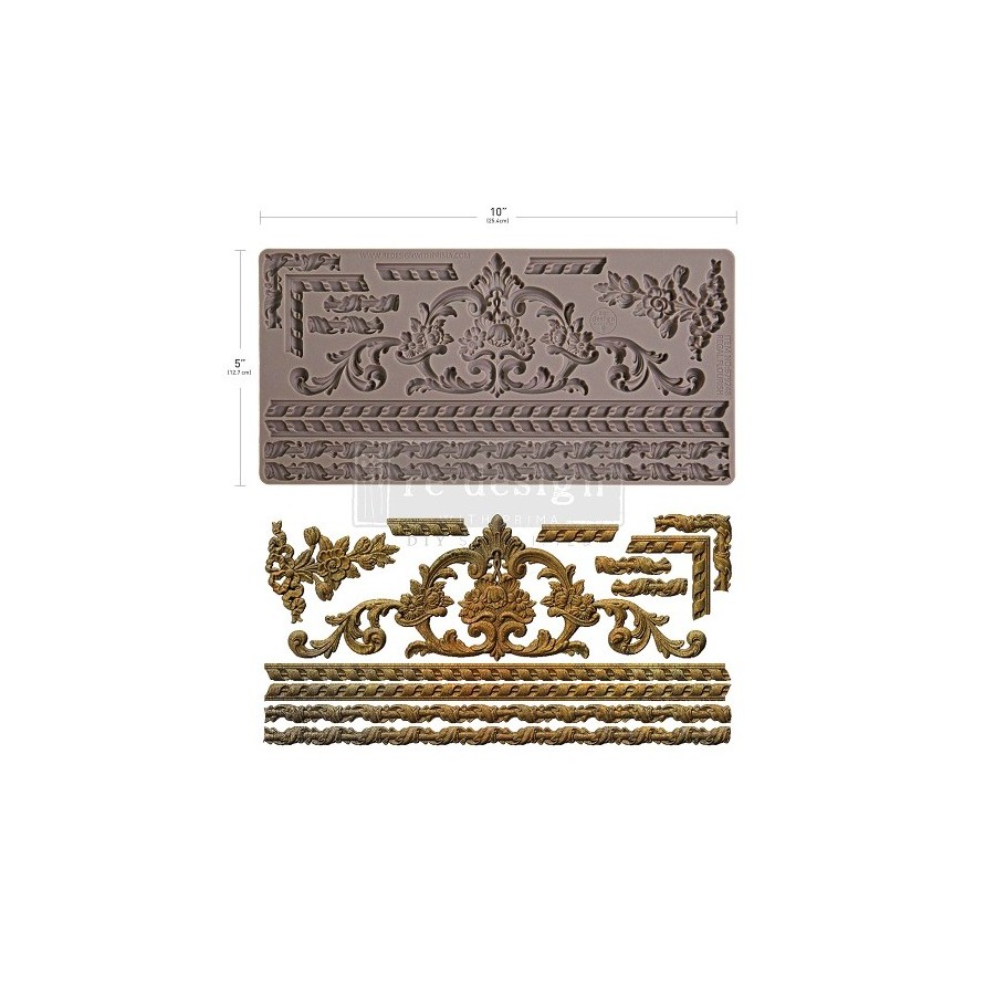 Con volutas clásicas, hojas de acanto y un hermoso escudo central, el Molde Decorativo Regal Flourish está diseñado para añadir un toque de grandeza instantáneo. Con múltiples tamaños de ribetes de cuerda retorcida y bordes ornamentados, este molde es perfecto para enmarcar decoración, embellecer bordes de muebles o superponer técnicas mixtas de temporada.