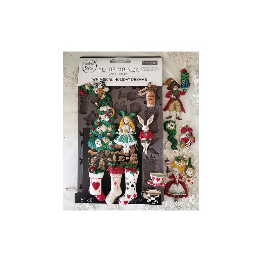 El País de las Maravillas se vuelve festivo con el Molde Decorativo Whimsical Holiday Dreams, que incluye a Alicia, el Conejo Blanco, tazas de té, bastones de caramelo y más, cada uno con un toque navideño y divertido. Estos elementos moldeables son perfectos para adornos, paneles de técnica mixta o etiquetas y cajas estilo cuento de hadas. Combínalos con la calcomanía a juego para un acabado verdaderamente mágico..