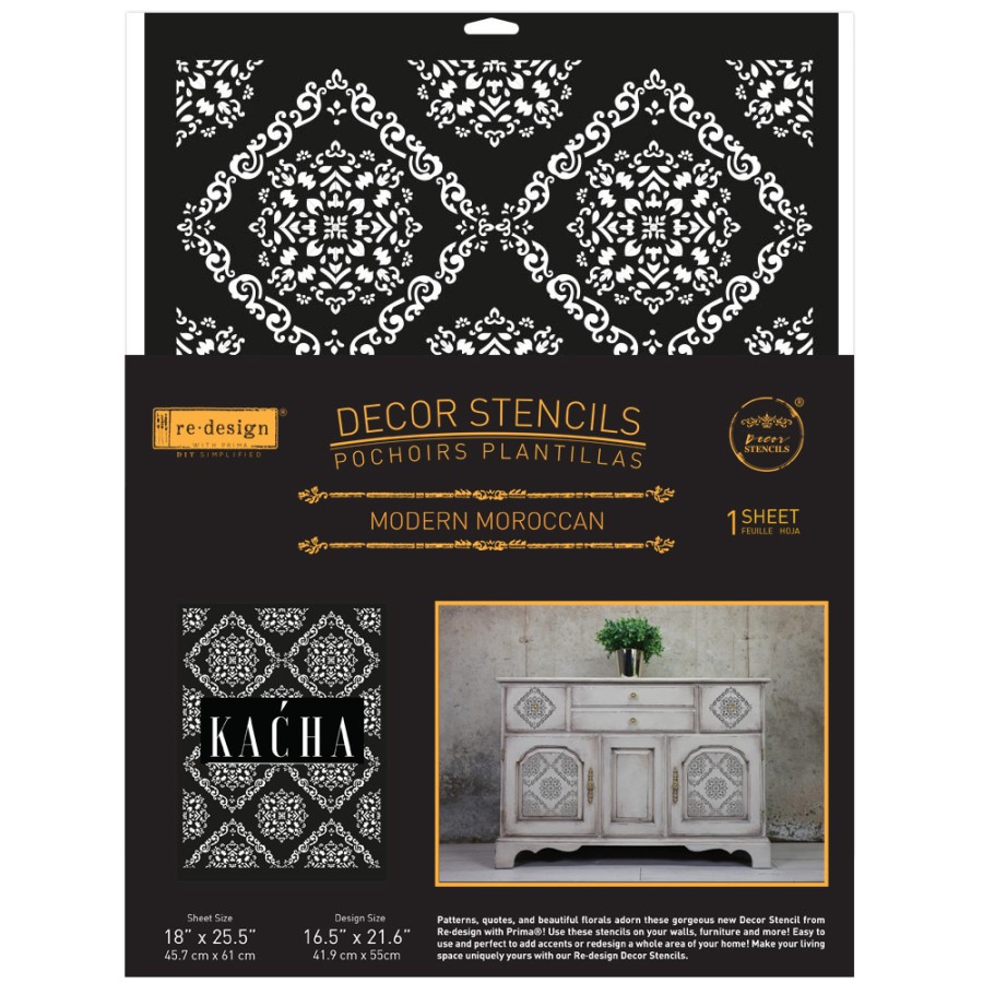 PLANTILLA DE DECORACIÓN KACHA – MARROQUÍ MODERNO – 1 PIEZA – TAMAÑO DEL DISEÑO 16.5″X21.6″ / TAMAÑO DE LA HOJA 18″X25.5″X 16 MIL – CORTE LÁSER EN MYLAR DE 16 MIL
