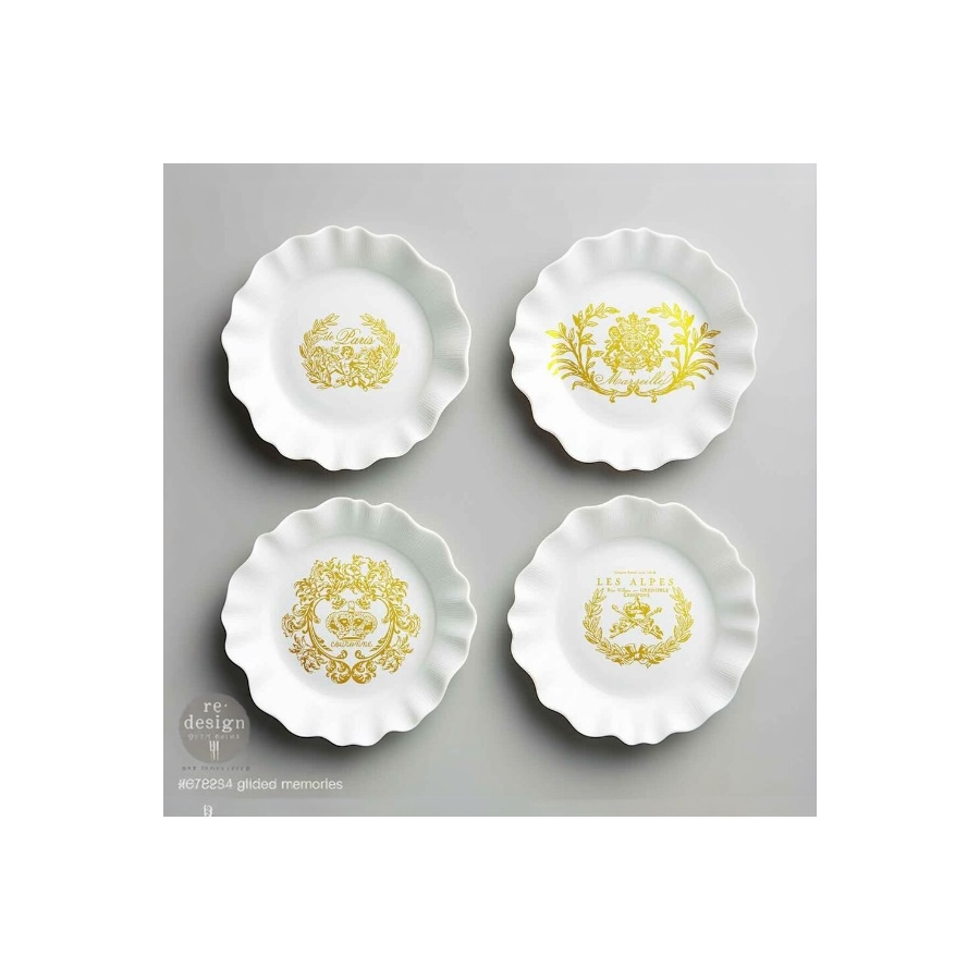 Las transferencias H2O Gilded Memories evocan la elegancia parisina atemporal con tipografía intrincada, escudos vintage y brillantes detalles dorados. Estos diseños que se activan con agua no solo son hermosos, sino también increíblemente fáciles de aplicar, lo que los hace perfectos tanto para principiantes como para artesanos experimentados. Con solo una aplicación de agua, estas transferencias cobran vida, adhiriéndose suavemente a su jarrón o plato, transformándolo en una obra de arte que irradia sofisticación y estilo. Económicas, con resultados rápidos, sin fatiga en las manos y con una guía de diseño integrada, ¡las transferencias Redesign Petite H2O son revolucionarias! Estas transferencias fáciles de usar hacen que el arte sea fácil y placentero. Con el tamaño perfecto para combinar con nuestro molde decorativo Contours of Grace, son ideales para bandejas, platos y decoración pequeña para el hogar. Solo de Redesign con Prima. 2 hojas de 21,6 x 28 cm.